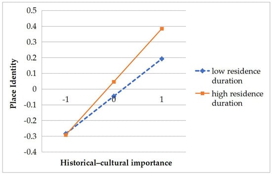 Moderating effects of residence duration between historical–cultural importance and place identity.