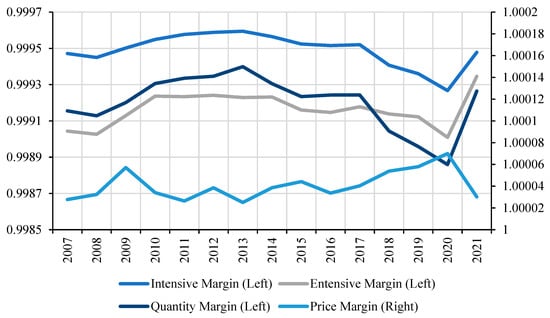 Following Hummels and Klenow [] and Shi [], we calculate the extensive margin, intensive margin, price margin, and quantity margin for China’s waste imports in sequence.