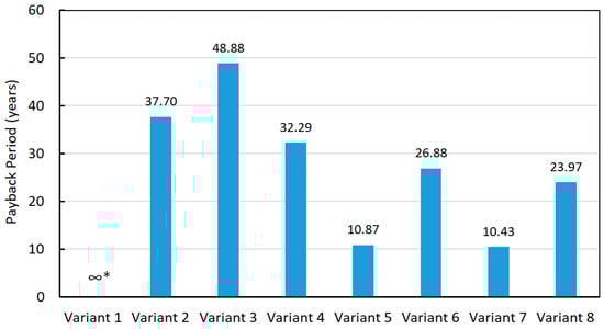 Calculated values of Payback Period duration (*—PP unable to be determined, mean annual O&M costs greater than possible benefits from the investment).