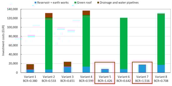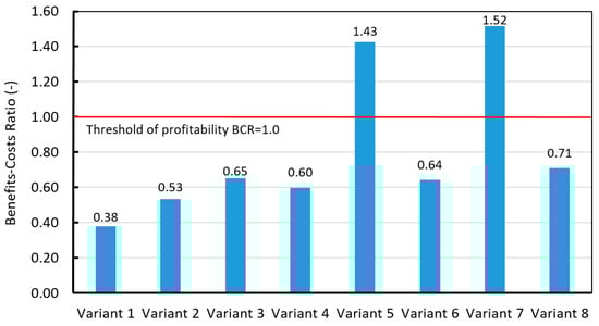 Calculated values of Benefits–Costs ratio for all proposed variants of rainwater management.