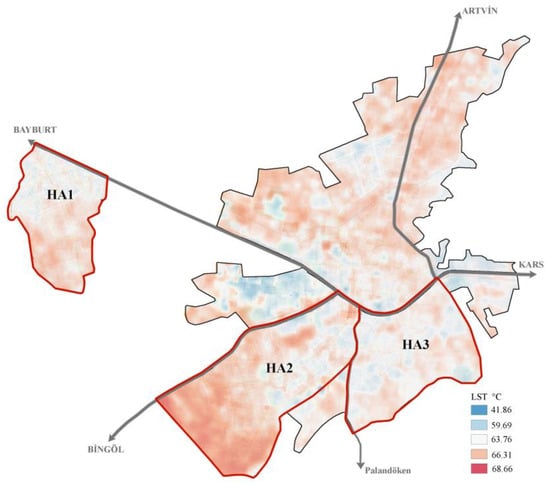 The Duncan’s Multiple Comparison Test results of LST values for the HAs in the study area.