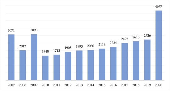 It is easily seen that the number of buses varies every year when the number of buses in the 2007–2020 period is examined. The number of buses has been on a regular, increasing trend since 2010. In 2020, the number of buses reached its maximum level. The increase in the number of higher education students contributed to this situation.