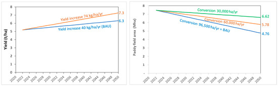 Additionally, we offer a brief scenario analysis regarding closing the yield gap, controlling paddy field conversion, and implications for rice self-sufficiency until 2050, including calculations for national rice consumption and land conversion rates.