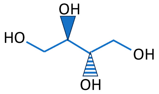 Erythritol belongs to the group of sugar alcohols, also known as polyols, which are formed by hydrolysis processes of the aldehyde or ketone group of various carbohydrates. Polyols are naturally abundant in fruit and vegetables, as well as in fermented foods. Erythritol is also a symmetrical molecule and therefore only exists in one form, the meso form (Figure 2).