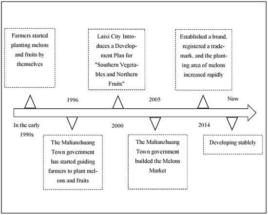 The historical development of fruit and melon cultivation in Malianzhuang Town is illustrated in Figure 3.
