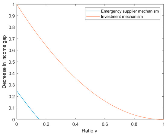 Comparing the supply recovery capability of the supply chain under different values γ when adopting different risk-coping strategies can better evaluate the impact of adopting this strategy on the supply chain resilience. In order to more intuitively reflect the characteristics of the model and the ratio relationship between and , is normalized to 1.