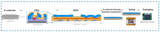 The size of the package in this study is 8 × 8 mm2; therefore, the die-to-package ratio then varies from 6.7 to 16.7, depending on the design (R&D- or industry-optimized). It should be noted that DFN 5 × 6 mm2 packages are also commercially available and can be appropriate for such dies.