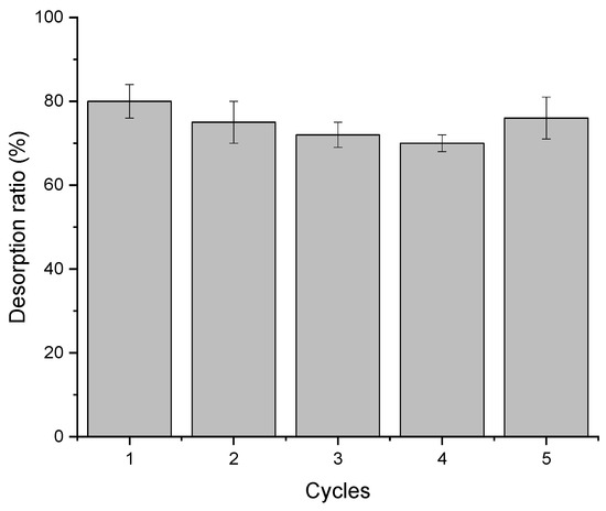 A series of five biosorption–desorption iterations were performed to evaluate the reusability of the biosorbent. For desorption, a solution of 0.1 M NaOH was used. The algal biomass, saturated with heavy metal ions, was subjected to the desorption process in the NaOH solution agitated on a rotary shaker at 120 rpm for two hours at a temperature of 25 °C. After each adsorption and desorption cycle, the algal mass was rinsed with milli-Q water and prepared for the next round of adsorption.