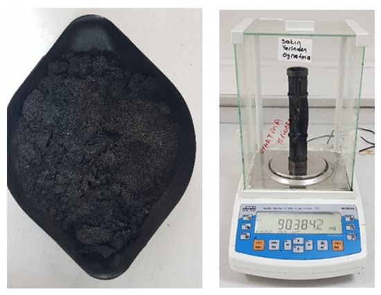 Pyrolysis experiments were conducted at three different pyrolysis temperatures, two different holding times, and two different N2 gas flow rates. In experiments conducted with three repetitions for each factor, a total of 36 values for biochar (Figure 3), bio-oil, and synthesis gas were obtained. The experimental factors and levels used in the study are given in Table 2.