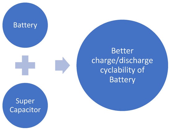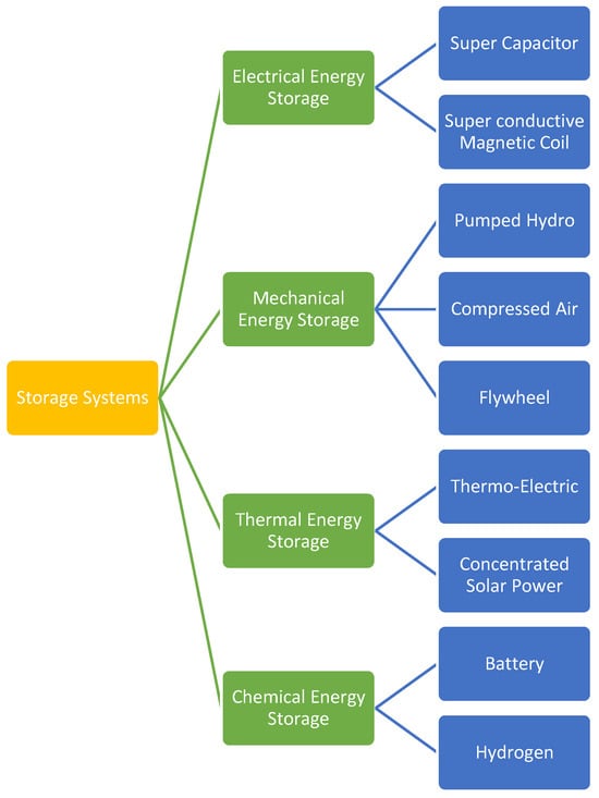 | Super capacitor storage | Improved cyclability as compared to a battery, high power density, and low maintenance cost. | Short-term storage, voltage losses with charge, and cannot store large energy values. | [26,30,38,39,40,41] |