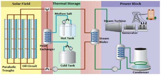 | Solar thermal storage | Sunlight can be used to the energy that can be used to generate electrical power. | High cost for installation, and complex systems. | [32,96,97,98,99,100,101,102,103] |
