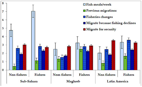 - Immigration due to fishing declines is a historical reason for migration [29,30,31,32,33]; fisher immigrants will perceive fishing declines in their home country (versus security) as a relatively more important reason for mobility than non-fishers.