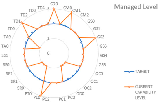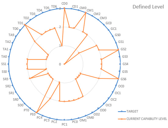 The coding system used to evaluate the capability level of the processes followed the ordinal scale defined in the ISO/IEC 33020 standard [48], classified as follows: (0) Not Achieved—if the achievement is between 0% and 15%; (1) Partially Achieved—if the achievement is between 16% and 50%; (2) Largely Achieved—if the achievement is between 51% and 85%; (3) Fully Achieved—if the achievement level is between 86% and 100%.