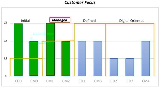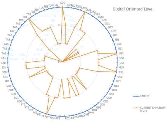 Although some digital transformation roadmaps in the literature incorporate maturity models, such as those by Gökalp and Martinez [42] and Haryanti et al. [43], these models are not specifically tailored for SMEs and do not include sustainability. For example, Gökalp and Martinez [42] presented a preliminary maturity model aimed at leveraging digitalization in manufacturing, and Haryanti et al. [43] introduced the DX-SAMM (Self-Assessment Maturity Model), which offers a comprehensive guide for improving digital maturity levels in organizations.