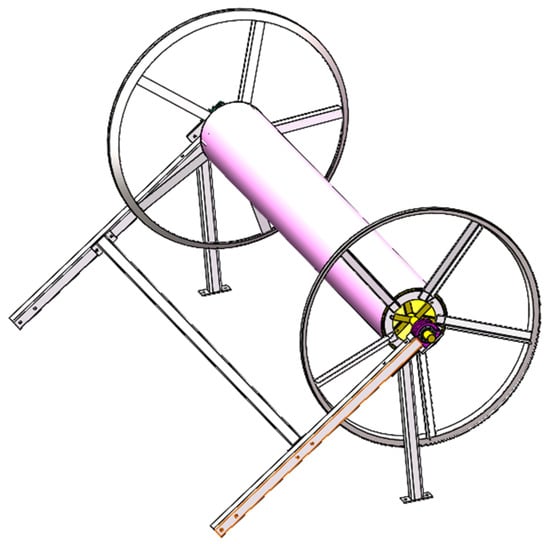 The film-rolling mechanism is mainly composed of an outer film-rolling baffle, a film-rolling roller, an inner film-rolling baffle, a roller, and a film-rolling shaft, as shown in Figure 7. The film-rolling mechanism is axisymmetrically distributed with the roller as the axis of symmetry. The outer baffle plate of the rolling film has a sleeve, the inner baffle plate of the rolling film has a bulge, and the outer baffle plate of the rolling film is connected with the inner baffle plate through the film-rolling roller. A film-raising nail is installed on one side of each film-rolling roller near the outer baffle plate. Both ends of the film-rolling shaft extend to the outside of the outer baffle plate and are fixed with positioning pins. The overall structure is easy to disassemble, and the recovered side film can be removed by removing the external baffle.