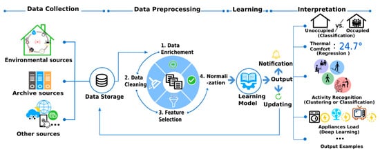 The adoption of Building Management Systems (BMSs) is now prevalent in both new construction projects and existing developments. However, it is crucial to acknowledge that building energy consumption can deviate over time unless it is consistently monitored and fine-tuned throughout its operational lifespan []. Building optimization systems heavily depend on real-time dynamic data, presenting challenges for implementation in existing structures, especially regarding the installation of new sensors. By harnessing historical building profile data, machine learning enables informed decision-making and broadens the potential for optimizing building performance.