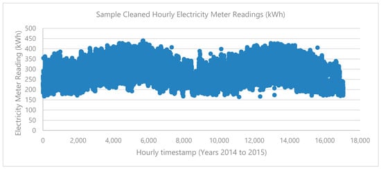 Determining the suitable length of past readings for accurate future estimates is crucial in addition to selecting an appropriate model. Research by Y. Chen and Z. Chen [] revealed that 778 buildings in a dataset exhibited different sensitivities to training data length. For short-term load forecasting (STLF), one year of data proved sufficient due to seasonality impacting weather and occupancy schedules. Interestingly, extending data length up to three years did not significantly enhance STLF accuracy [].