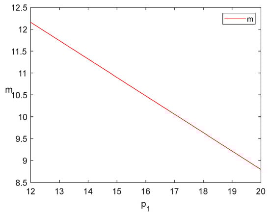 Step 1: find the first and second derivatives of (. The first derivative is (A1), and the second derivative is (A2). The second derivative is less than 0, the function image is convex, and the function obtains the maximum value at the extreme point. Let the first derivative be equal to 0, and the expression (A3) of is obtained. In other words, when the game reaches equilibrium, the relationship between the price of food and other variables is as expressed in Formula (A3).