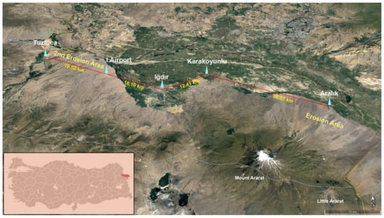 - Karaoglu, M.; Simsek, U.; Erdel, E.; Tohumcu, F. A case study: Wind characteristics of Igdir province in terms of wind erosion and introduction of second wind erosion area. Fresenius Environ. Bull. 2018, 27, 7460–7469. [Google Scholar]