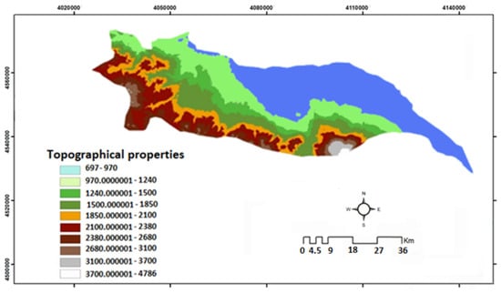 | Topographical Proporties | 3100–4786 m (Alpine Zone) | 2100–3100 m (Mountainous Region) | 1500–2100 m (Rugged Terrain) | 970–1240 m Near Flat Land | 1240–6971 m Lowland Area |