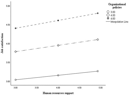 Organizational policies moderate the human resources support and job satisfaction relationship.