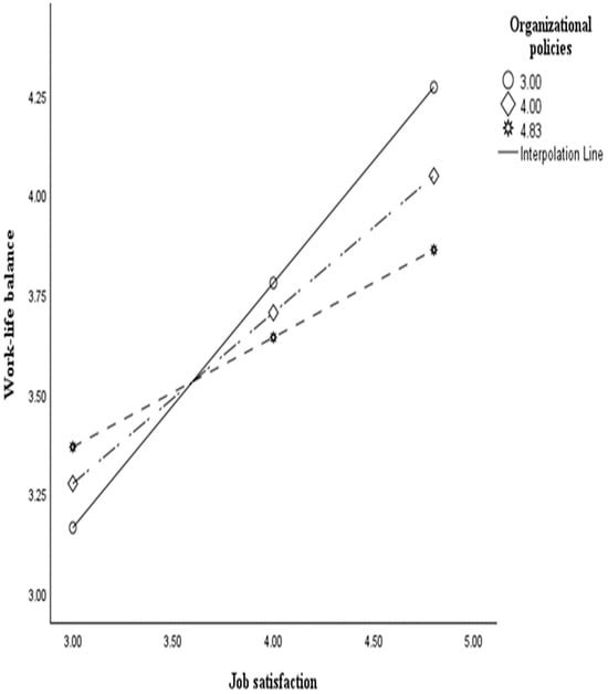 Organizational policies moderate the relationship between job satisfaction and work–life balance, with supportive policies leading to a more pronounced positive impact of job satisfaction on work–life balance.