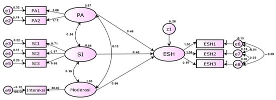 In testing the measurement model, we need to conduct a normality test. Normality testing is a statistical procedure used to determine whether a dataset follows a normal distribution, which is a symmetric bell-shaped distribution. This distribution is characterized by its mean (average) and standard deviation, and many statistical methods assume that the data are normally distributed. This result can be observed from the CR value of skewness ± 2.58, which indicates that the data are normally distributed. Skewness is a metric for the probability distribution’s “asymmetry,” or how skewed or deformed the curve seems to be, either to the left or to the right [53]. Table 6 shows that all indicators have CR values of skewness ± 2.58, indicating that they are regularly distributed. It is crucial to acknowledge that this technique is only one of many for determining normalcy and that not all datasets will always lend themselves to its use. Moreover, it is often advised to employ several approaches to determine normalcy to obtain a more comprehensive grasp of the data’s distribution.