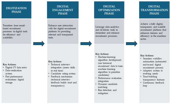 Through the integration of digital tools, the recruitment process can become more streamlined, allowing employers to address skill shortages, improve transparency in hiring practices, and reduce recruitment costs. Additionally, by incorporating technical interviews and performance evaluations into digital platforms, the recruitment process can be optimized to ensure that candidates meet the high standards required in the shipbuilding and SMRC sectors [1,3,6]. These digital tools are expected to contribute to the overall sustainability of the maritime workforce by ensuring that candidates are matched to roles based on objective criteria, such as past performance and verified qualifications, rather than subjective assessments [20].