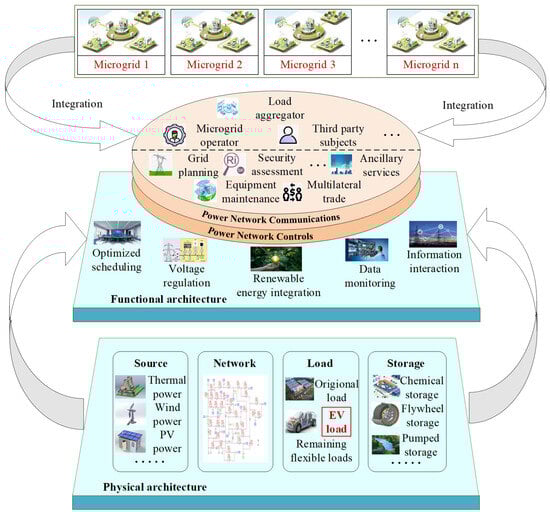 - Liu, Y.; Wang, Y.; Li, Y.; Gooi, H.B.; Xin, H. Multi-agent based optimal scheduling and trading for multi-microgrids integrated with urban transportation networks. IEEE Trans. Power Syst. 2021, 36, 2197–2210. [Google Scholar] [CrossRef]