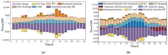 - Case 4: The EVs within the microgrid adopt an orderly charging mode without considering P2P transactions between microgrids, but with consideration of DR.