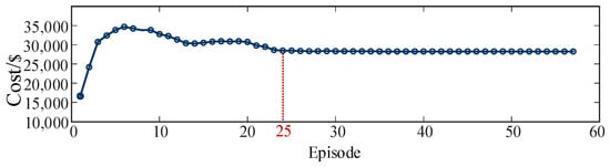 - Minimizing EV load costswhere is the Lagrange multiplier for the first subproblem at time j and > 0. After solving the charging and discharging plans for each EV in the first round, subsequent iterations can refer to the method described in reference [42].