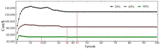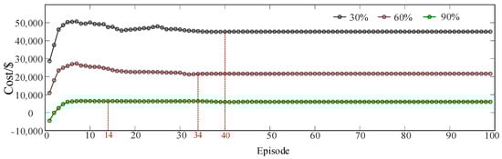 - Compared to running stand-alone strategies, the proposed strategy reduced the operational costs of a single EV-integrated microgrid by approximately 45.61%. For the multi-microgrid system, the operational costs were reduced by 37.36%. This approach not only offers improved economic efficiency, but also ensures the fair distribution of benefits among the microgrids.