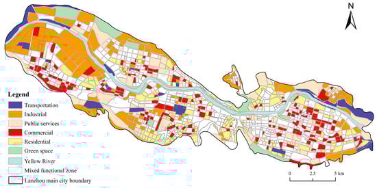 Distribution map of single functional zones in the central city area of Lanzhou.