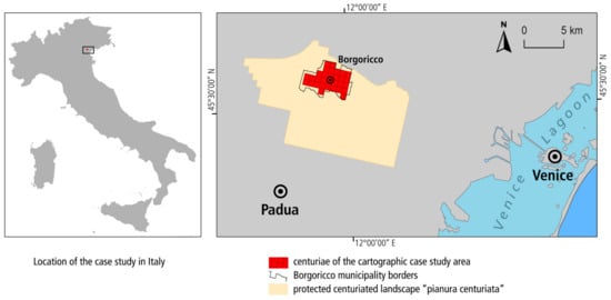 - Mengotti, C. L’Agro Centuriato a Nord-Est di Padova: I Caratteri Fondamentali. In Antico e Sempre Nuovo: L’Agro Centuriato a Nord-Est di Padova dalle Origini All’età Contemporanea; Bortolami, S., Mengotti, C., Eds.; Cierre Edizioni: Sommacampagna, Italy, 2013; pp. 19–49. [Google Scholar]