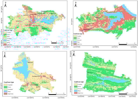 The land use status within the watershed significantly impacts a lake’s water quality, and land use types in different seasons have different impacts on water bodies. Land use types in southeast Hubei are mainly dominated by cropland, forest, grassland, water, and impervious surfaces, and scholars have concluded that these land use types have different levels of influence on the water quality statuses of rivers and lakes [41]. For example, anthropogenic disturbance has a high degree of influence on lake water quality [42], whereas forests and grasslands are recognized as land use types that benefit water quality [43,44].