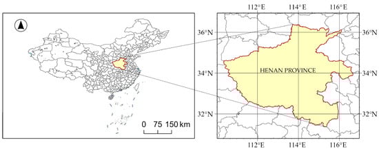 Henan Province spans 530 km from north to south and 580 km from east to west. It borders Anhui and Shandong to the east, Hebei and Shanxi to the north, Shaanxi to the west, and Hubei to the south, positioning itself as a key region linking the north to the south and connecting the east to the west (Figure 1). The province covers a total area of 167,000 square kilometers, making up 1.73% of the nation’s total land area. The topography of the province is characterized by higher elevations in the west and lower in the east, with the Taihang, Funiu, Tongbai, and Dabie Mountains forming a semi-circular arc along the northern, western, and southern borders. The central and eastern regions are dominated by the Yellow Huaihai Alluvial Plain, while the southwestern part is home to the Nanyang Basin (Figure 2). Plains and basins make up 55.7% of the total area, with mountains covering 26.6% and hills 17.3% (Source: Henan Provincial Government Website http://m.henan.gov.cn/2023/06-13/2760283.html, accessed on 8 August 2024).