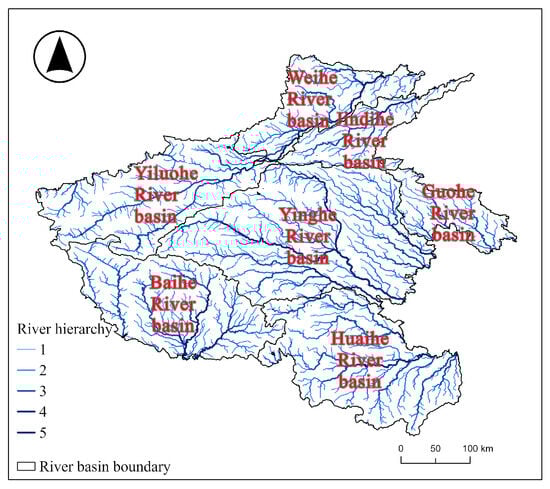 Utilizing GIS hydrological analysis tools, the research area was divided into seven basins: the Baihe River Basin, the Yinghe River Basin, the Yiluohe River Basin, the Guohe River Basin, the Weihe River Basin, the Huaihe River Basin, and the Jindihe River Basin. Additionally, based on previous research, the river basins were further divided into smaller sub-basins, with the streamflow threshold set to 3000. Under this threshold, a total of 2134 small sub-basins were identified (Figure 2).