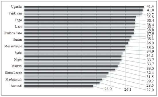 The Figure 1 below shows that 9 of the 12 countries with a high food insecurity index are in Africa [2]. This shows the extent of hunger and malnutrition on the continent. It is a situation where Africans suffer from hunger and malnutrition despite their arable lands and progressive development in the ICT sector. Unlike the food security sector, the ICT segment of the continent has been very strong, vibrant, and growing progressively, especially with the growing use of mobile phones and the internet. Internet use or access is also improving because of the huge utilization of applications on mobile phones. The sector, according to the World Bank report, remains Africa’s fastest-growing regarding the numbers of mobile phones and internet users [5]. In Nigeria, it was reported that between 2012 and 2016, the number of Facebook users grew from 6 to 16 million people, and that millions of people have subscribed to the use of WhatsApp, Blackberry Messenger, Twitter, and other digital technologies [6,7]. Despite the transformation in the use of the internet, especially among the youth in Africa, it has hardly been effective in the food security sector. Today, farmers from rural Africa still find it very difficult to connect to their customers and determine the exact quantity and quality of harvests or agricultural produce required in the market. This information gap, which is partly caused by a lack of access to mobile phones, is in some ways the cause of food waste and shortages in some African countries. For example, unequal access to information about the supply chain by farmers, especially those that have to do with storage, transportation, and marketing, could lead to food waste. The wastage could be avoided if food producers had adequate access to digital agricultural technologies such as blockchains, artificial intelligence (AI), mobile phones, WhatsApp, and others, which can provide precise information about the produce needed in the market [1]. The point being made is that, apart from income that can aid food accessibility through purchase, digital agricultural technologies can also promote food accessibility [1]. This can be in the form of showcasing the harvests on mobile phones for people to see and make demands for the purchase of food [2]. The utilization of food, on the other hand, can also be made possible through smart phones, AI, and automation. The exact quantity, quality, and nutritional value of food can easily be detected and identified using any of the digital agricultural technologies [8]. Although there is a growing recognition of the fact that access to the use and effective application of digital technologies in agricultural production will enhance food security in Africa, the efforts to date in terms of access to deploy these digital tools have not been evenly widespread and uniform. Access to the use of ICT or digital tools by farmers in Africa has been highly uneven and discriminatory. Women are almost about 50% active in food production, but they hardly have access to digital agricultural technologies compared to their male counterparts [2].