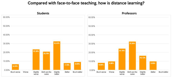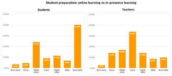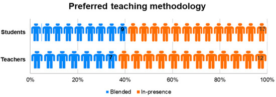 Among students, there was a slight preference for distance learning. On the other hand, teachers had a preference for in-person teaching (Figure 10).