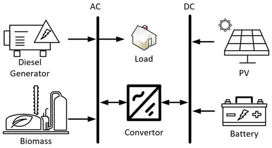 - Kumar, P.; Pal, N.; Sharma, H. Optimization and techno-economic analysis of a solar photo-voltaic/biomass/diesel/battery hybrid off-grid power generation system for rural remote electrification in eastern India. Energy 2022, 247, 123560. [Google Scholar] [CrossRef]