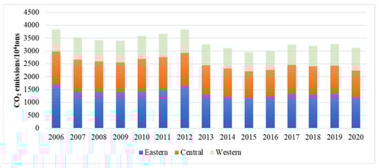 CO2 emissions in the eastern, central and western regions.