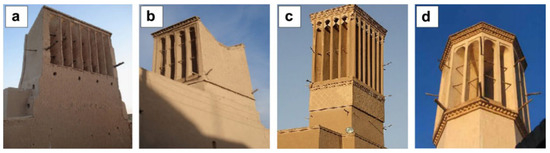 - Hosseinnia, S.M.; Saffari, H.; Abdous, M.A. Effects of different internal designs of traditional wind towers on their thermal behavior. Energy Build. 2013, 62, 51–58. [Google Scholar] [CrossRef]