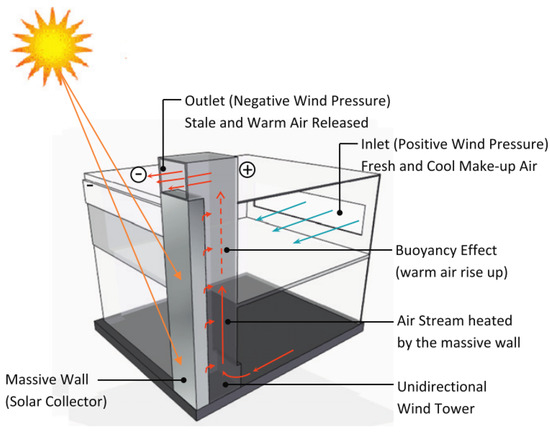- Morales, X.; Sierra-Espinosa, F.Z.; Moya, S.L.; Carrillo, F. Thermal effectiveness of wind-tower with heated exit-wall and inlet-air humidification: Effects of winter and summertime. Build. Environ. 2021, 204, 108110. [Google Scholar] [CrossRef]