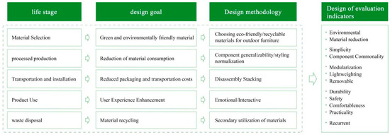 This study targets the design objectives of the study through environmental research and user interviews; conducts secondary semi-structured interviews with diverse user roles, aiming to comprehensively collect users’ suggestions and core needs for the sustainable design of the research object; organizes the feedback from the interviews to obtain the user demand indicators; and applies the “AHP-QFD-FBS” integrated design methodology framework to quantify and map the user demand indicators. We obtained sustainable urban furniture design solutions, designed a series of urban furniture for community parks, and completed the design evaluation.
