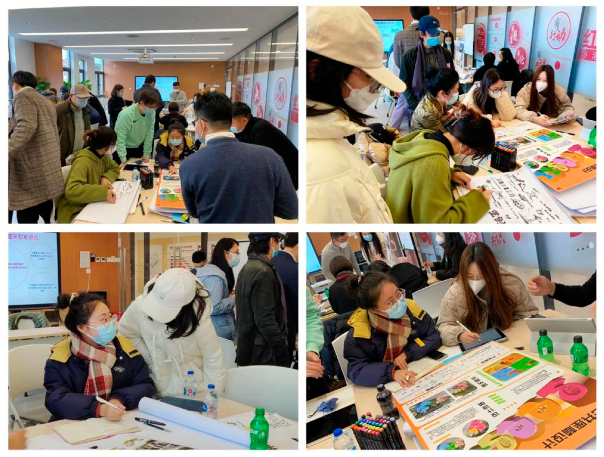 The design workshop affirmed that the studied public seating solution meets the diverse needs and leisure experiences of different groups of people, recognizes the sustainable impacts of environmentally friendly materials and modular design, and fits in with the overall characteristics of Gumei Park. In addition, the workshop participants proposed the following suggestions for the design: (1) For the seating layout, taking into account how people use the park facilities, a large number of regular seats should be placed near the recreational facilities and activities, and an appropriate amount of tabletop seats should be placed on the park paths and special pavilions; (2) for the design, participants hoped that the storage racks could be adopted in a semi-closed form to ensure that the inner space of the racks is neat and that it would be in line with the overall characteristics of Gumei Park. See Figure 11 for details.
