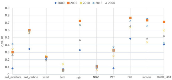 -value refers to the explanatory power of each driver of desertification and ranges from 0 to 1, with larger values indicating stronger explanatory power;