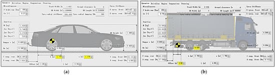 Schematic diagrams of two vehicle models: (a) the passenger car; (b) the truck.