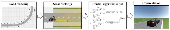 Currently, the testing scenarios for autonomous driving technology are limited, and safety evaluations rely heavily on large numbers of real-world data, making it difficult for on-road tests to comprehensively cover various complex scenarios. Conversely, simulation testing can safely and efficiently provide a wide range of test scenarios while reducing costs. Among the various simulation software options, PreScan is widely recognized and used in the industry due to its rich sensor modeling types, powerful algorithm integration and testing capabilities, good compatibility, ease of use, and broad application scenarios. Cao et al. developed an autonomous driving simulation scenario generation system based on PreScan [25]. Wang et al. employed PreScan, MATLAB/Simulink, and CarSim 2020 to examine the decision-making and trajectory-tracking control of AVs in a co-simulation environment, validating the feasibility and efficacy of the proposed framework [26].