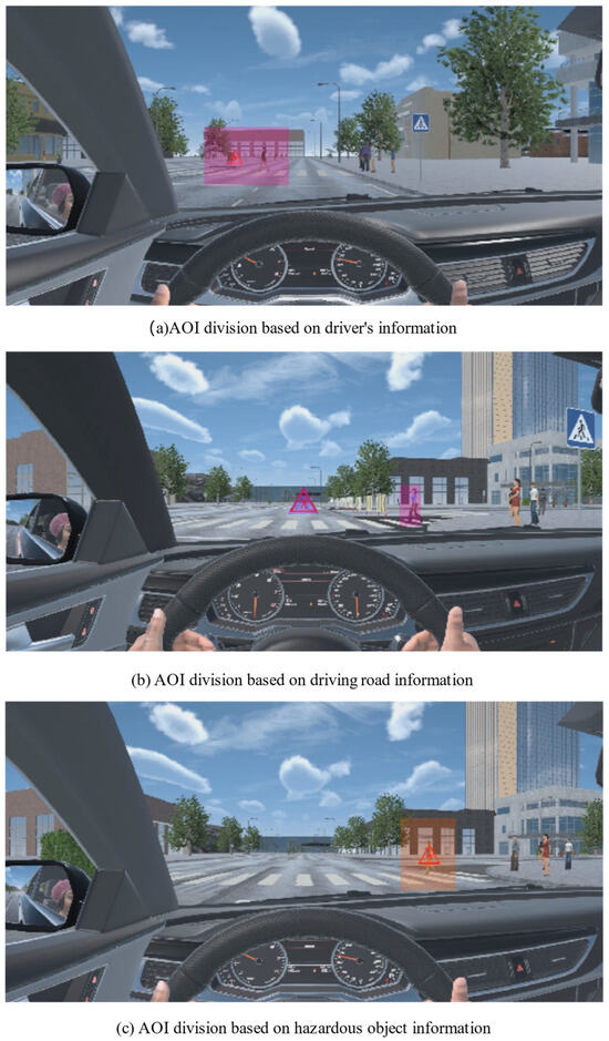 AOIs division of three different groups of AR-HUDs crash warning types.