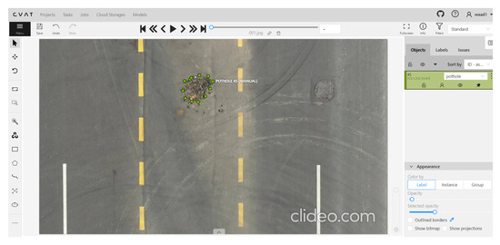 UAVs have been used as an enabling technology in intelligent transportation systems (ITSs), where UAV-captured images are utilized for monitoring the road infrastructure. One of the road monitoring applications in which UAVs have been used is the inspection of the transportation infrastructure pavement. A review of these applications and related approaches is available in [10]. Compared with traditional methods that use images captured by smartphones and in-vehicle cameras, utilizing UAV images for detecting potholes and road anomalies offers several advantages [10,11]. UAVs can be operated remotely without a human pilot on board, making them highly versatile. UAVs possess multiple advantages, including accessibility, high efficiency, and cost effectiveness, making them ideal devices for area monitoring and inspection. They can be equipped with various sensors and cameras to capture high-resolution images and videos from different angles, providing valuable insights into monitored sites. They can access hard-to-reach areas and provide close-up inspections that are difficult or impossible to obtain with traditional inspection methods. UAVs can cover large areas quickly and accurately, allowing for real-time monitoring and data collection. This makes it easier for decision-makers to make informed decisions and adjust plans accordingly based on the accurate, real-time collected data [11].